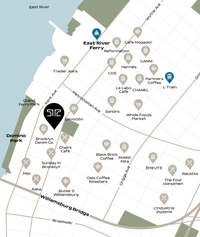 Life at Fifty One Domino puts you at the heart of Williamsburg, where everyday conveniences and destination dining are always within easy reach. Start your mornings with a coffee at Devoción or Butler Bake Shop, meet friends for brunch at Sunday in Brooklyn, or enjoy wood-fired pizza at Stretch Pizza by Michelin Starred Chef Wylie Dufresne. For elevated evenings, acclaimed spots like Misi bring handmade pasta and seasonal flavors to your table.