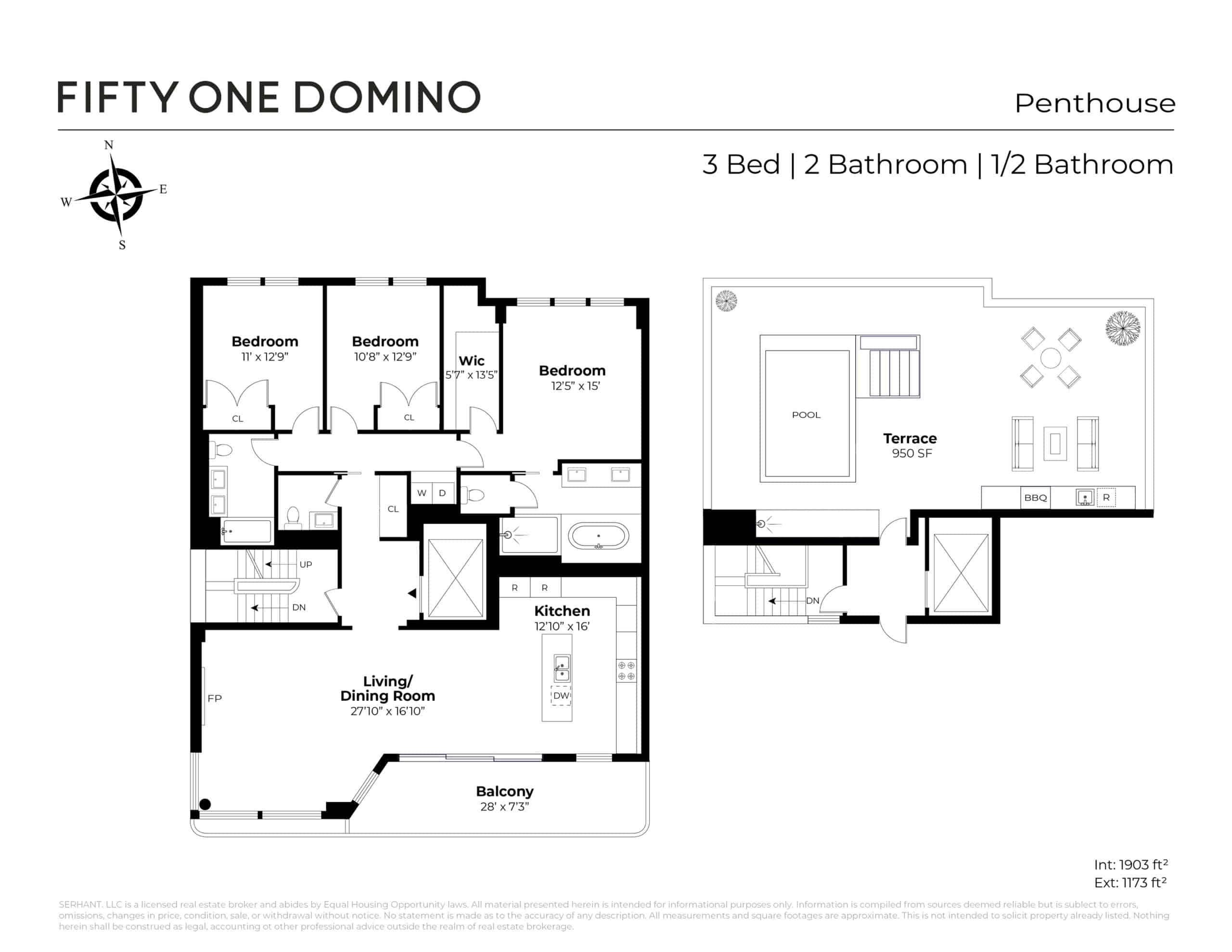 Unit | Bedrooms | Bathrooms | 1/2 bath | Int. SF | Ext. SF | Common charges monthly |